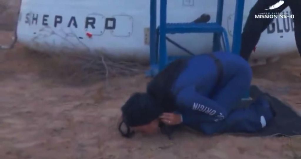 Lauren Sánchez fue la primera en salir de la nave, seguida por Katy Perry quien se mostró emocionada, pero también sorprendió a los presentes al besar el piso. Todas fueron recibidas por Jeff Bezos, director ejecutivo de Blue Origin.