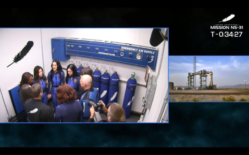 Katy Perry formó parte de la misión NS-31 de Blue Origin cuya tripulación estuvo integrada exclusivamente por mujeres, siendo la primera en su tipo desde 1963. El cohete New Shepard ascendió a 106 kilómetros de la superficie terrestre y cruzó la línea de Kárman.