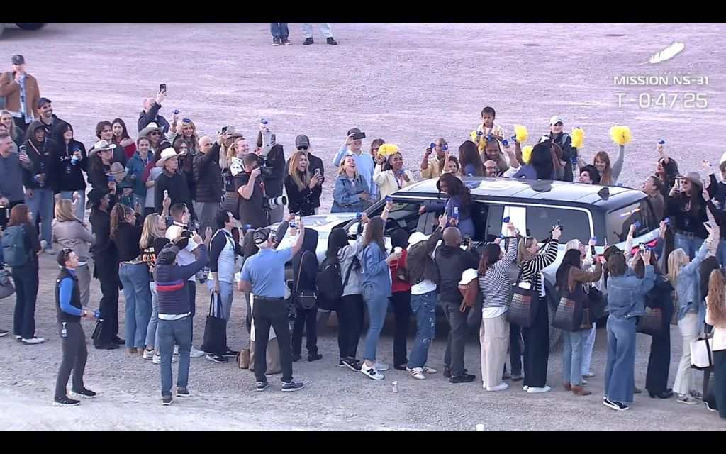 Cientos de personas así como integrantes del medio artístico se dieron cita para presenciar este momento y desear buena suerte en su misión a la primera tripulación conformada por mujeres en 60 años, entre ellas Kris Jenner, Khloe Kardashian y la presentadora Oprah Winfrey.