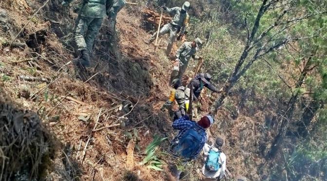El grupo de brigadistas “Guardianes de la Montaña Xico”, aseguraron que continúan con los trabajos para sofocar el incendio registrado en la región de Perote.