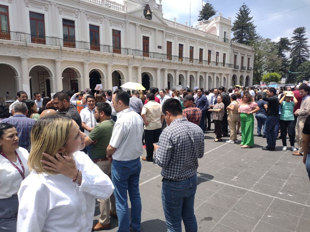Esta mañana en la zona centro de la capital fueron evacuados los edificios de Palacio de Gobierno, Palacio Municipal, la Torre de la Secretaría de Seguridad Pública, así como de empresas privadas y escuelas.