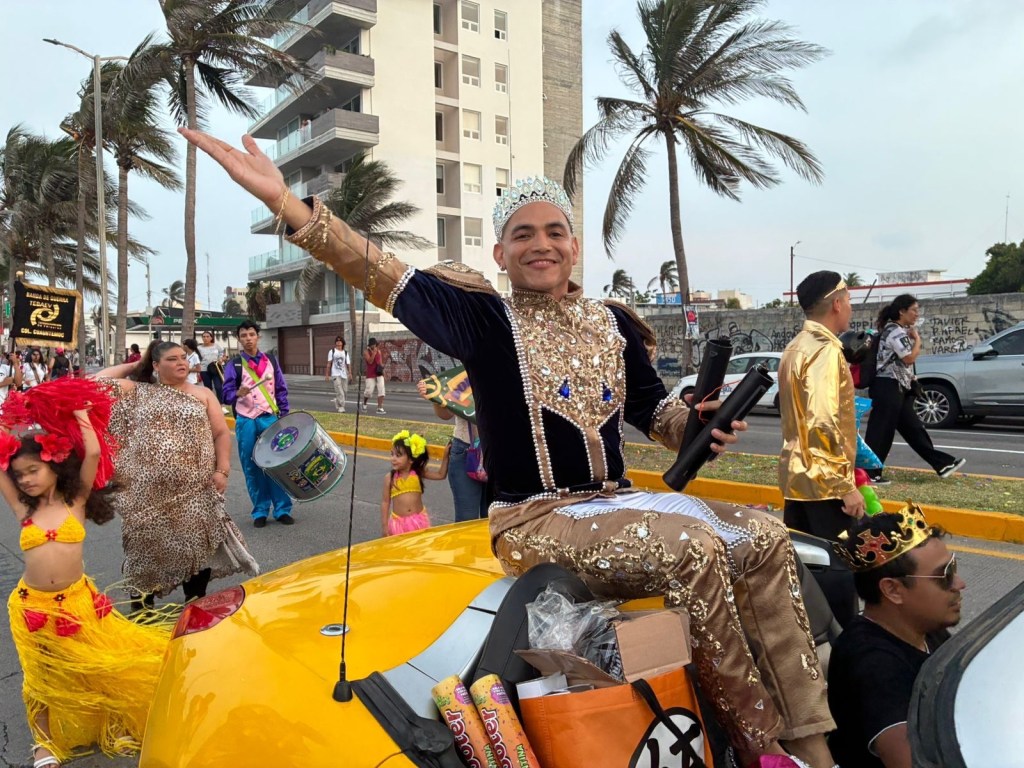 Veracruz, Ver.- En un ambiente donde imperó el color, la música y un gran ambiente familiar, César de Alegría, rey electo de la asociación civil Por Un Veracruz Sin Discriminación (PUVSD) participó en el Papaqui del Carnaval de Veracruz 2025.