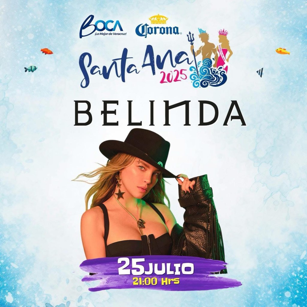 Boca del Río, Ver.- La princesa del pop latino Belinda deleitará a los boqueños con su talento el próximo 25 de julio como parte de los conciertos por las fiestas de Santa Ana de Boca del Río. La cantante será la encargada de encabezar el segundo masivo en la Plaza Cívica de la ciudad.