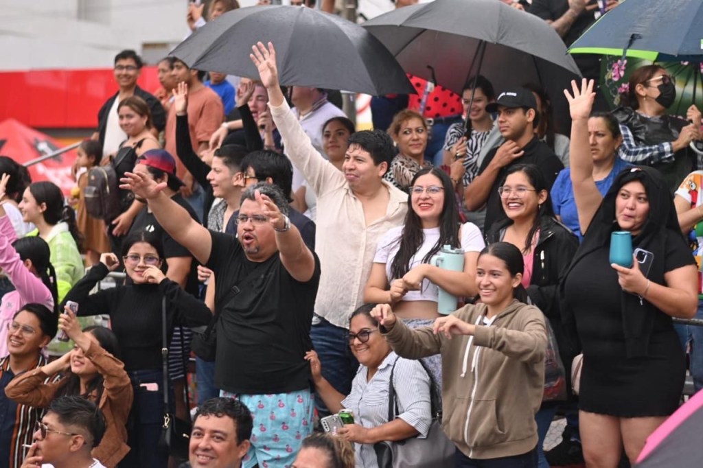 Pese al cielo nublado y la lluvia que se registró por algunos momentos, el desfile inició en punto de las 17:00 horas encabezado por el carro alegórico de la reina Adriana Fonseca, quien lució un elegante vestuario morado con plumas.