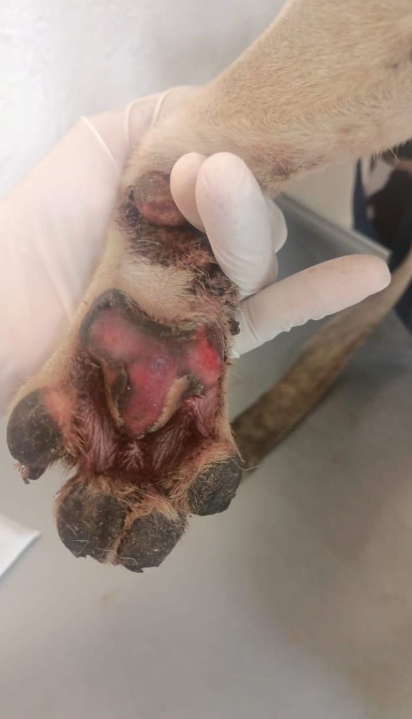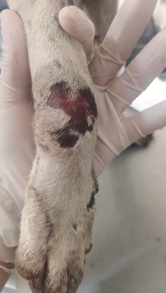 El canino resultó con una almohadilla de sus patas desgarradas debido a que fue arrastrado sobre el pavimento, pero también presentaba lesiones en el cuerpo por enfermedades causadas por parásitos como la ‘Dirofilariasis’ (gusano del corazón), ‘Ehrlichia’ y ‘Anaplasma, ambas transmitidas por garrapatas.