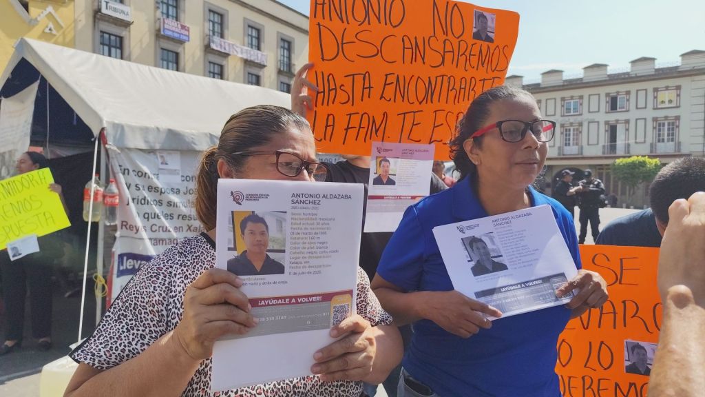 Xalapa, Ver.- Familiares y amigos de Antonio Aldazaba Sánchez se manifestaron este lunes en el centro de Xalapa, bloqueando la calle Enríquez para exigir a las autoridades la pronta localización del joven, quien desapareció el pasado jueves 11 de julio tras acudir a una entrevista de trabajo.
