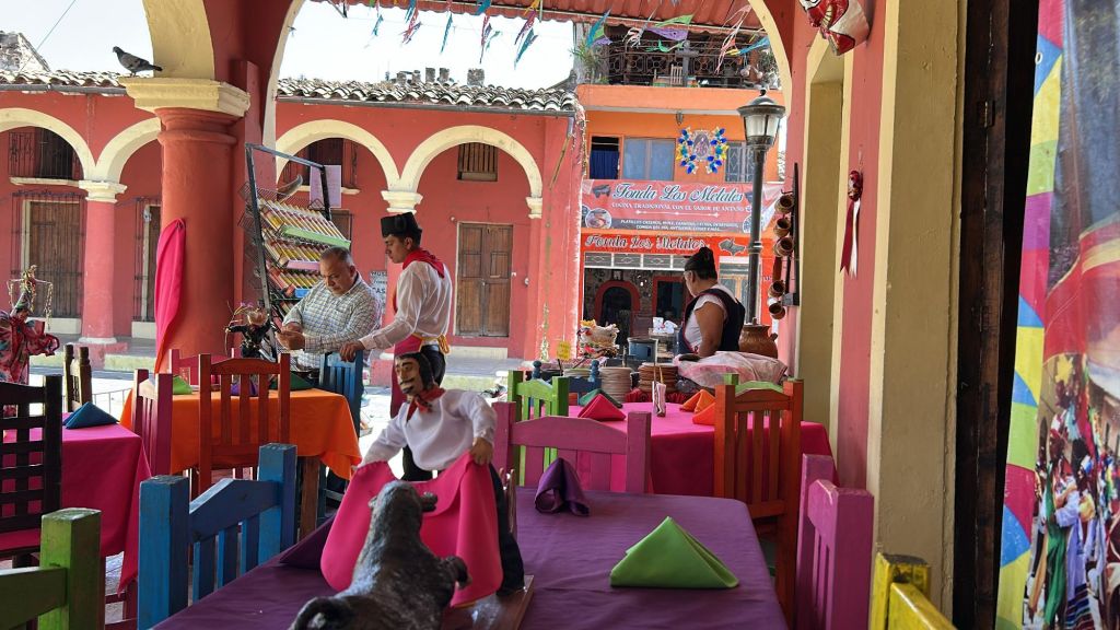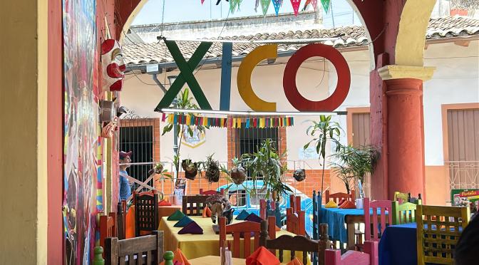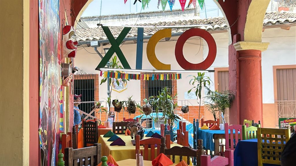 “El mole viene con arrocito o un tamal que se llama choco. Y bueno, la gente quiere probar la comida típica de Xico, el mole, las enchiladas de nata, los tamales canarios, el postre. Y bueno, aquí los esperamos. El 19 es un día muy visitado porque inicia la elaboración del tapete a las 5 de la mañana. Y concluye la visita de nuestra patrona del pueblo pasando por el tapete a las 12 de la noche. Entonces todo el día hay actividad de visitantes y turistas”.