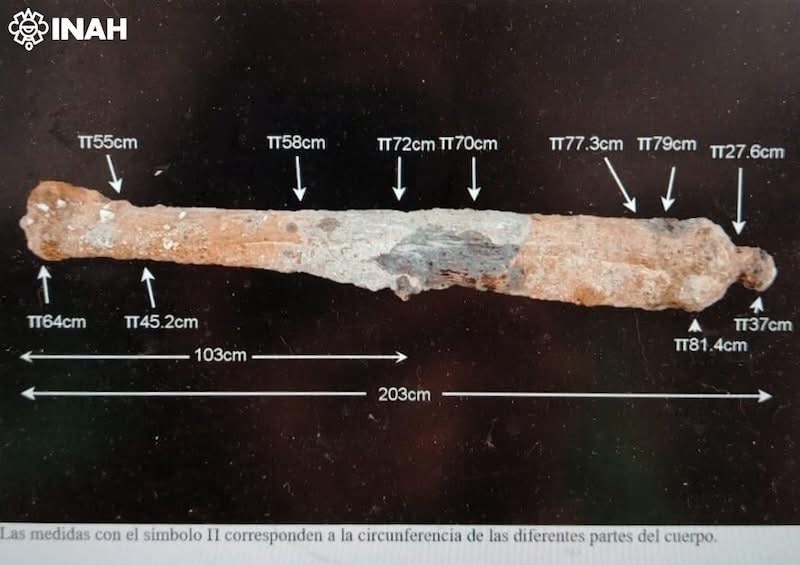 El artefacto mide 2.03 metros de largo, pesa 750 kilogramos y corresponde a un calibre “de a 6 pies” o 201.16 centímetros.