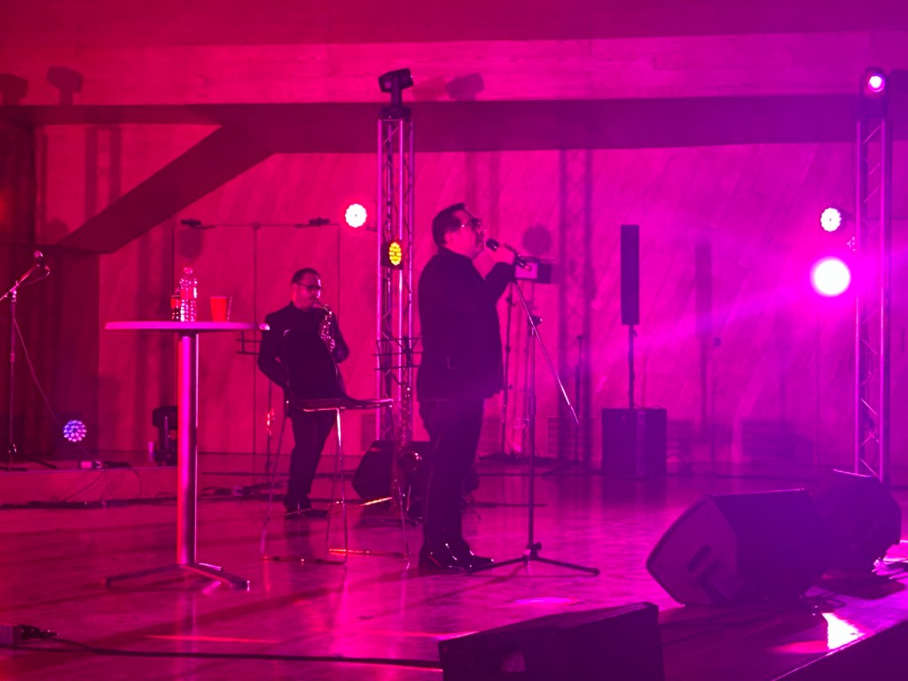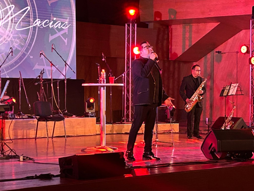 Tras un pequeño intermedio, llegó el momento esperado por la audiencia; Carlos Macías subió al escenario acompañado únicamente por la melodía del saxofón y el piano.