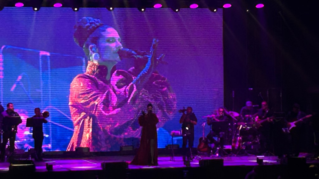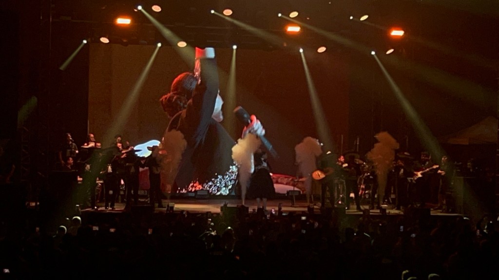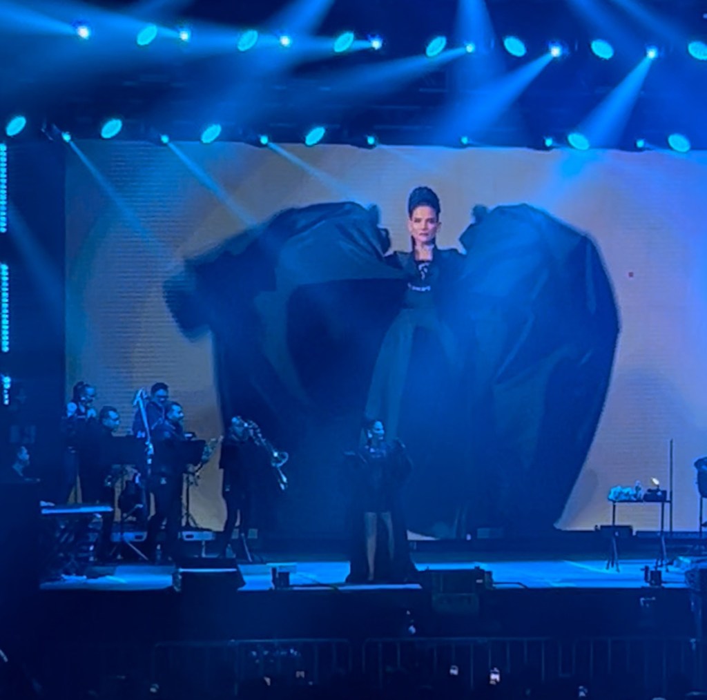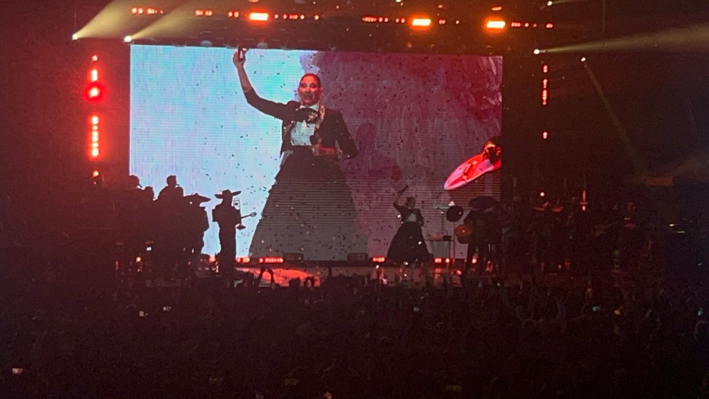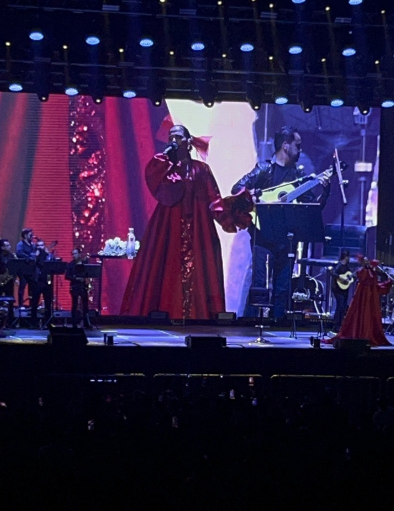 Acompañada por una banda y mariachi en vivo, cuatro cambios de ropa, coristas y una cuidada producción visual y de luces, la intérprete logró una conexión íntima con la audiencia, que se mantuvo de pie durante gran parte del concierto.