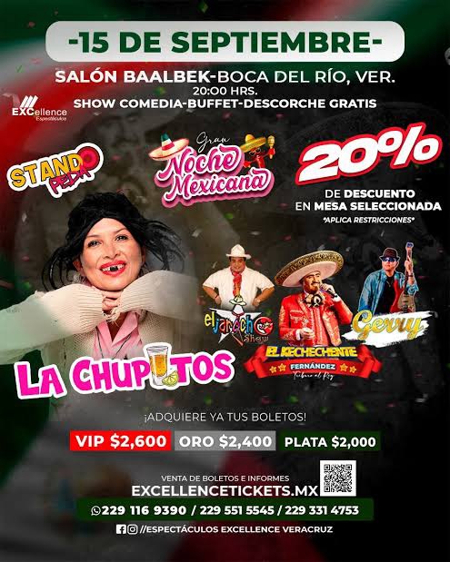 El evento será el lunes 15 de septiembre en el salón Baalbek de Boca del Río a partir de las 8:00 de la noche y hasta que el cuerpo aguante. Los interesados pueden adquirir sus boletos en el recinto de lunes a viernes en un horario de 10:00 a 18:00 horas.