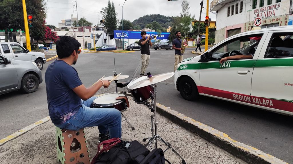Xalapa, Ver.- En un semáforo cualquiera de Xalapa, donde normalmente reinan el claxon, la prisa y las caras cansadas, algo distinto empieza a suceder. Suenan los primeros golpes de un timbal, la trompeta responde, el saxofón dibuja una melodía en el aire y de pronto, la rutina se convierte en fiesta. Ahí están ellos: Congo en Tres Orquesta, un grupo de jóvenes que decidieron transformar la calle en escenario y el tráfico en aplausos.