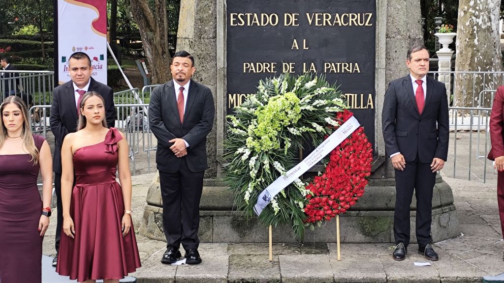 Xalapa, Ver., 17 de septiembre de 2025. – El delegado de Programas para el Bienestar en Veracruz, Juan Javier Gómez Cazarín, encabezó la guardia de honor ante el monumento a Miguel Hidalgo en el Parque de Los Berros, donde lanzó un llamado político a no dar por concluida la lucha por la independencia y la soberanía nacional.