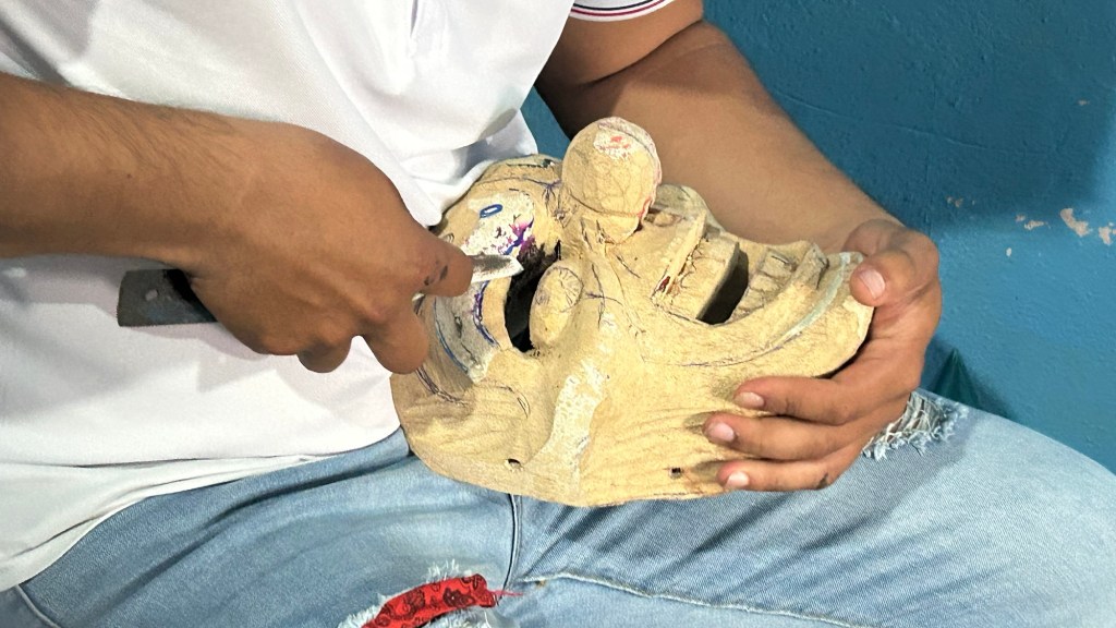 “Fue mi abuelo quien me enseñó —recuerda—. Cuando yo era niño me hizo una máscara y, con el tiempo, decidió mostrarme cómo se hacían. Yo tenía apenas 13 años cuando tallé la primera.”