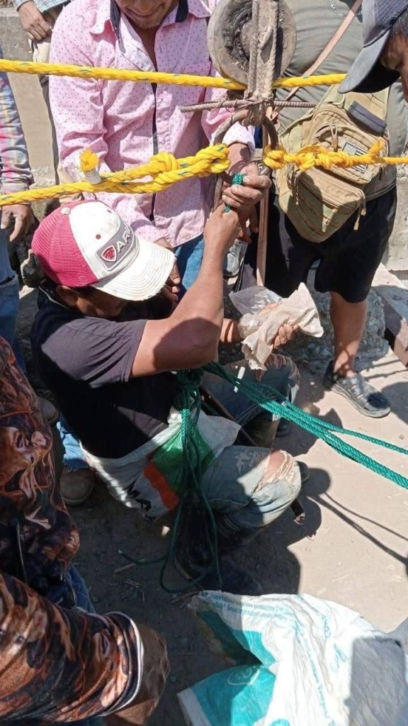 En la comunidad de Tzicatlán (de Texcatepec), hombres y mujeres del campo se reunieron bajo un mismo espíritu ancestral: tierra, lucha y solidaridad. Ya habían improvisado otros recursos temporales — dicen, una tirolesa artesanalpara cruzar cargas ligeras sobre el cauce —, mientras esperaban se restableciera el puente oficial. Pero la tirolesa resultaba insuficiente: pesada, riesgosa, limitada.