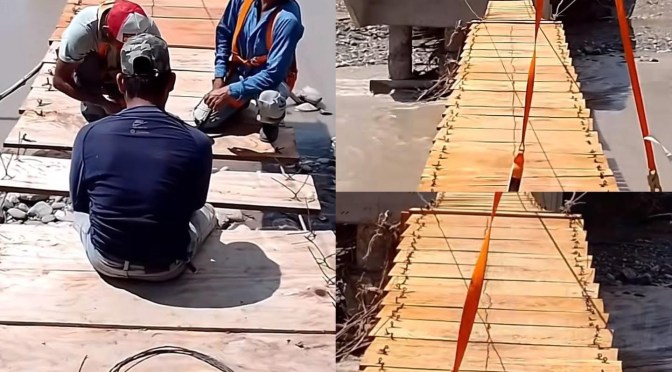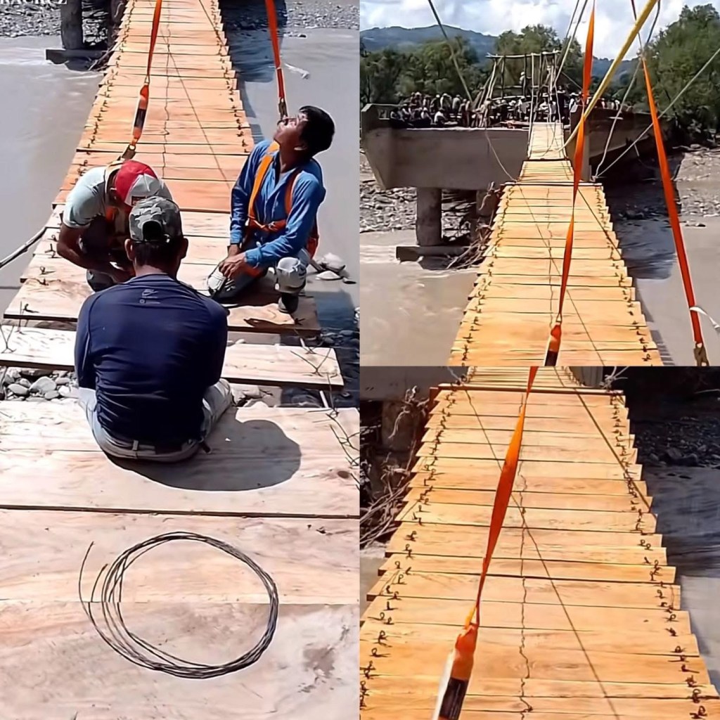Hoy ese puente colgante es más que un paso por encima del agua: es símbolo de la fuerza de una comunidad que no espera, que no cesa. Que, con lo que tiene — manos, madera, cuerdas — levanta lo que la naturaleza y las carencias derribaron.