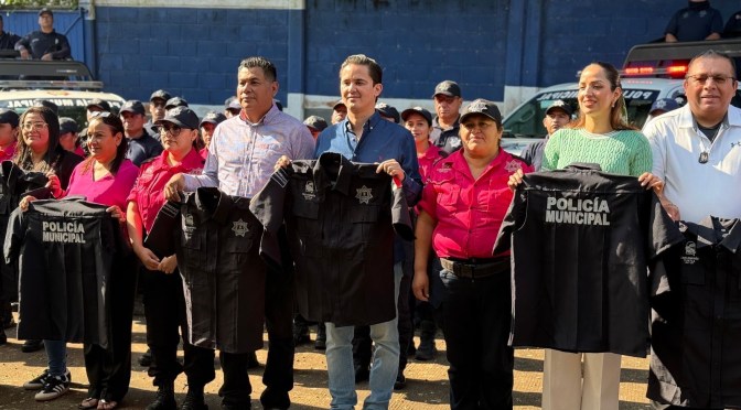 Rafa Fararoni también entregó los nuevos uniformes que identificarán a las corporaciones policíacas de la ciudad; pidió portarlos con orgullo y compromiso, “tenemos una gran responsabilidad por delante, les pido cuiden de cada una de las herramientas de trabajo, cuentan conmigo y sé que contare con ustedes para lograr el objetivo”, finalizó.