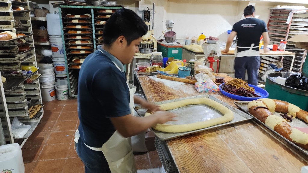Por su parte, Alejandro Fernández, trabajador de la panadería, explicó que la producción de las roscas requiere jornadas extensas y un proceso cuidadoso que inicia desde las seis y media de la mañana y puede prolongarse hasta la noche, dependiendo de la demanda.