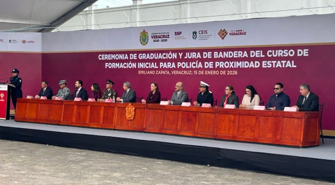 Emiliano Zapata, Ver.– La Secretaría de Seguridad Pública de Veracruz dio inicio al año 2026 con el egreso de 53 elementos de la Policía de Proximidad Estatal, así como con la entrega de vehículos, equipo táctico y unidades especializadas, como parte del fortalecimiento de las capacidades operativas en todo el territorio estatal.
