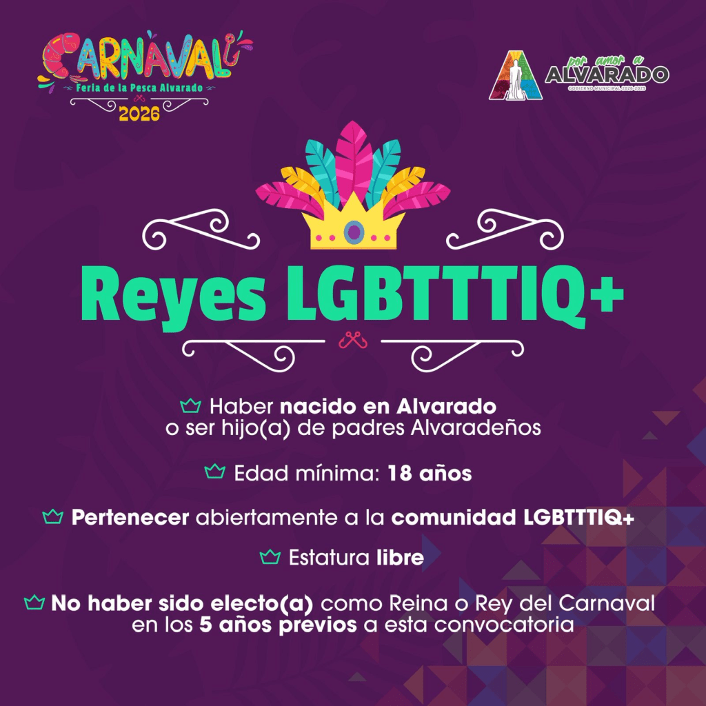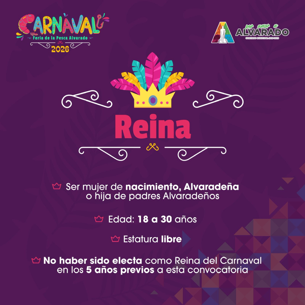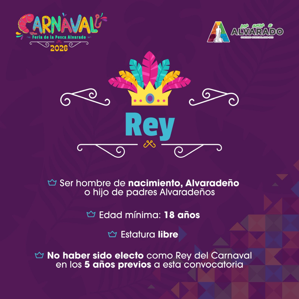 Alvarado, Ver.- El Carnaval de Alvarado 2026 se realizará del 07 al 14 de abril y como parte de los preparativos el presidente municipal, Alberto Ángel Cobos anunció que ya se encuentran disponible la convocatoria para integrar la Corte Real.