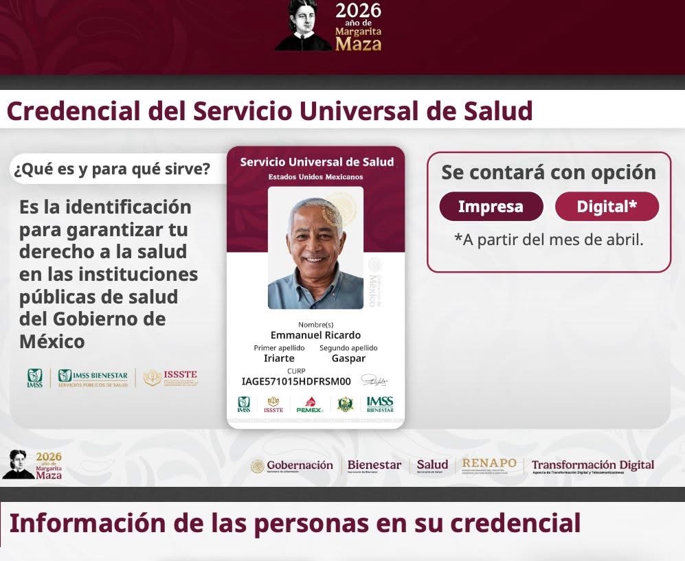 El delegado de Bienestar indicó que, aunque el registro iniciará en marzo, el uso pleno de la credencial para acceder a hospitales de cualquier institución a nivel nacional se prevé para el próximo año, una vez concluida la etapa de organización y cobertura total del padrón.
