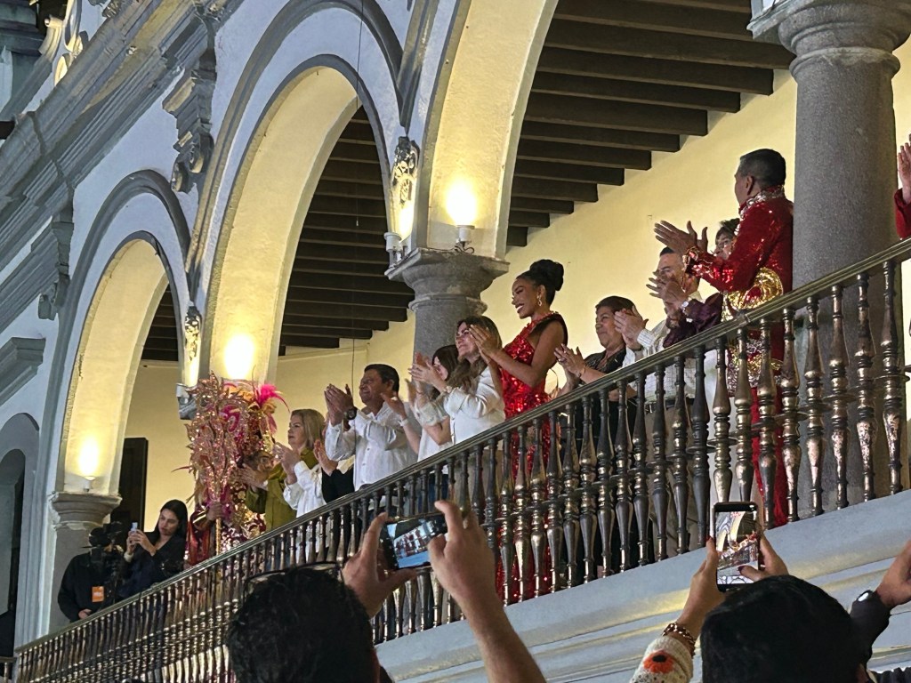La corte real electa disfrutó de la ceremonia desde el palco del palacio municipal bailado y saludando al público en compañía de autoridades como la alcaldesa de Veracruz, Rosa María Hernández Espejo y su homónima de Boca del Río, Maryjose Gamboa Torales. En representación del gobierno estatal llegaron la secretaria de cultura, Xóchitl Molina y el de turismo, Igor Fidel Roji.