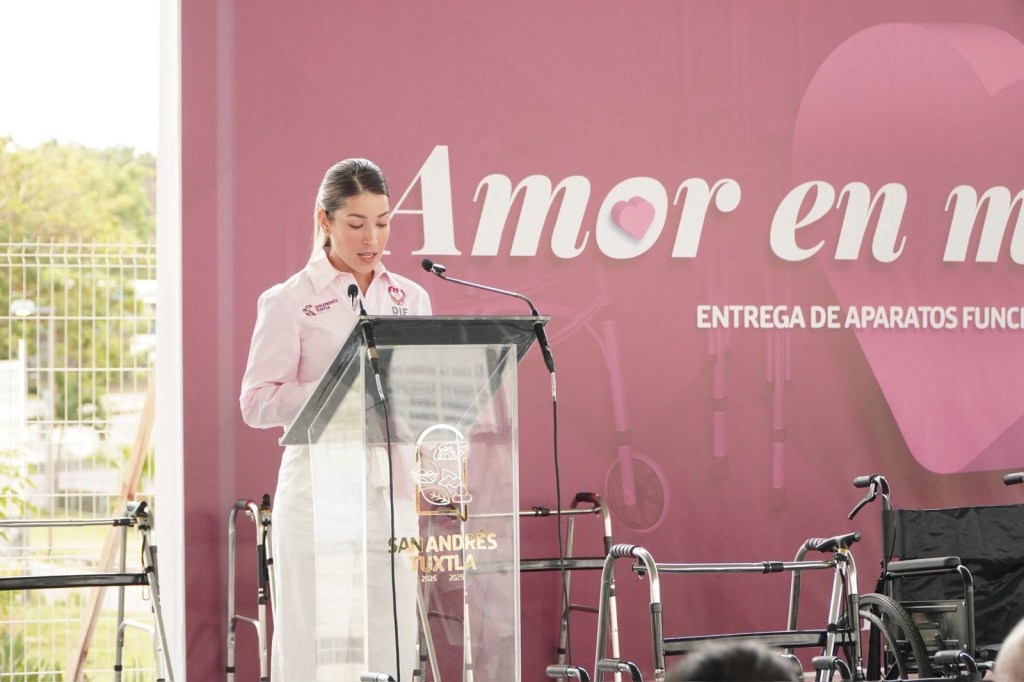 San Andrés Tuxtla, Ver., 25 de marzo de 2026.- La presidenta del sistema DIF Municipal, Andrea Vargas Fernández, entregó este miércoles 36 aparatos funcionales a población vulnerable de la ciudad de San Andrés Tuxtla.