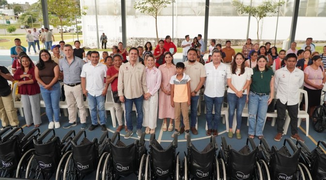 “Estamos realizando la entrega de 36 aparatos funcionales, 26 sillas de ruedas, cuatro andaderas, 1 bastón de 4 puntos y 5 bastones plegables. Detrás de cada uno de estos aparatos hay una historia, una necesidad, una familia y también hay una responsabilidad que asumimos con el corazón”, detalló la presidenta del DIF.