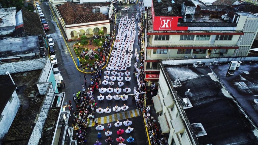 San Andrés Tuxtla, Ver, 29 de marzo de 2026.- Más de 500 bailarines integrantes de las siete delegaciones invitadas al Festival «Vive San Andrés» expusieron en calles de la ciudad el monumental «La Bruja» y «La Bamba» en el tercer día de fiesta y cultura.