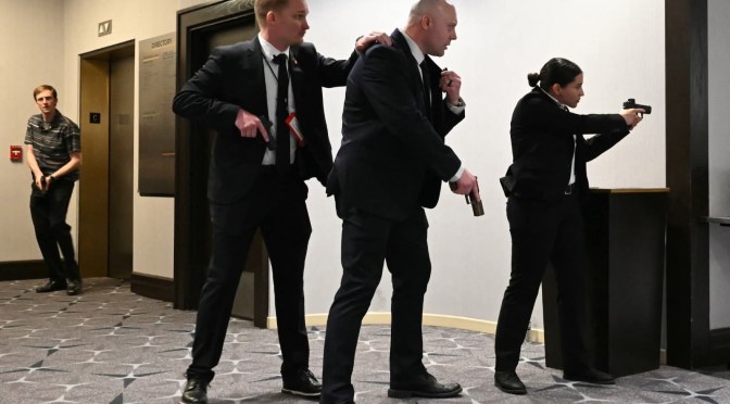 Versiones preliminares señalan que un individuo fue abatido por el Servicio Secreto en el área del lobby del hotel donde se desarrollaba la cena, provocando alarma entre los asistentes, quienes se resguardaron tras escuchar detonaciones.
