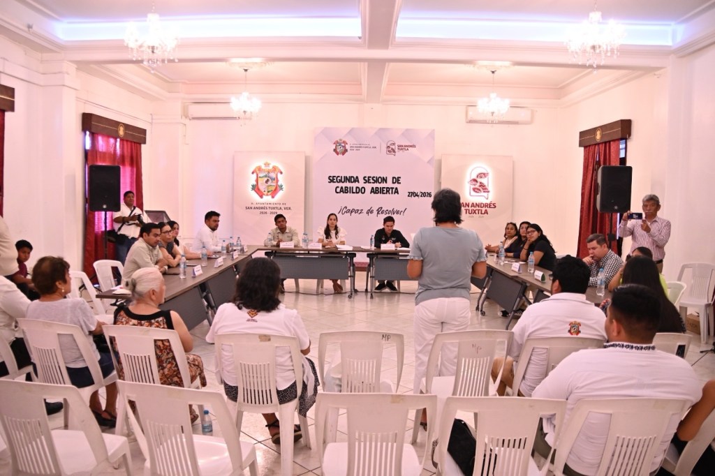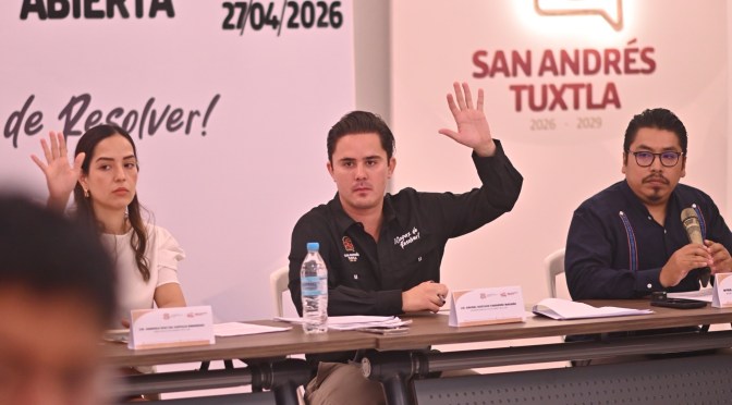 San Andrés Tuxtla, Ver., 27 de abril de 2026.- Este lunes, el cuerpo edilicio de la ciudad, encabezó la Segunda Sesión de Cabildo Abierto para abordar con diálogo y transparencia el tema de Tránsito y Vialidad.