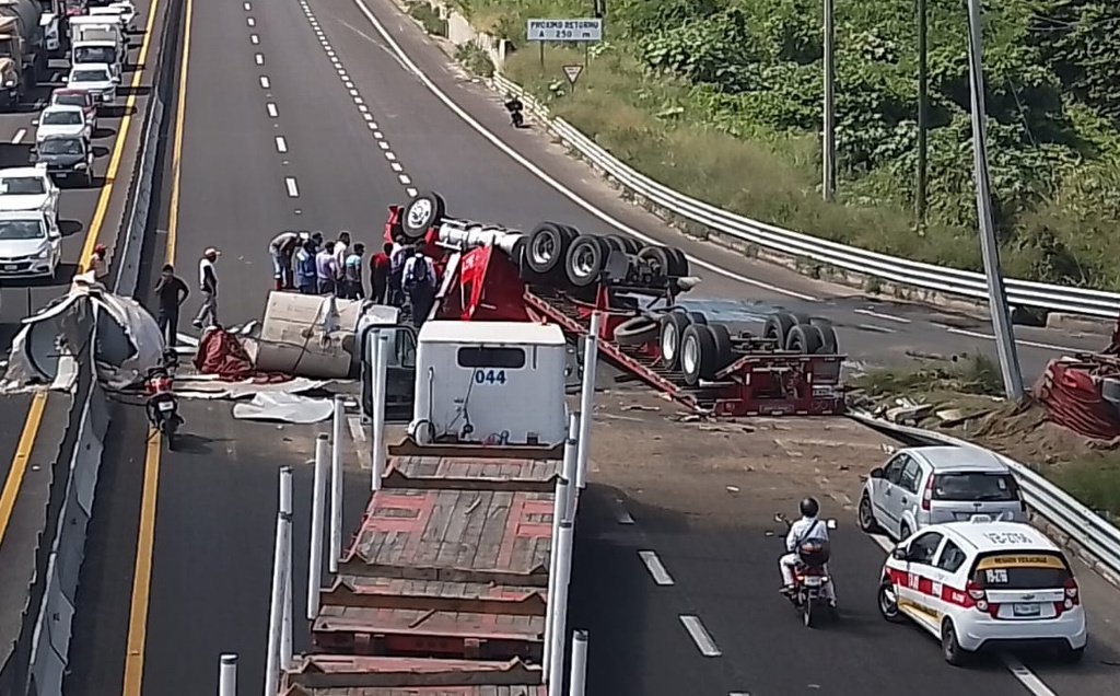 La tarde de este lunes se registró una aparatosa volcadura en la autopista Cardel – Veracruz, a la altura de la colonia Renacimiento, al norte la ciudad de Veracruz.