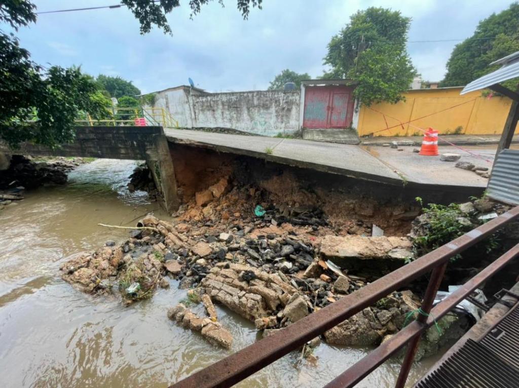 Aunque las lluvias cesaron, la fuerte corriente que lleva el arroyo acotope que pasa por debajo de este puente, hace que la tierra se siga deslavando, situación que mantienen en alerta a los vecinos.