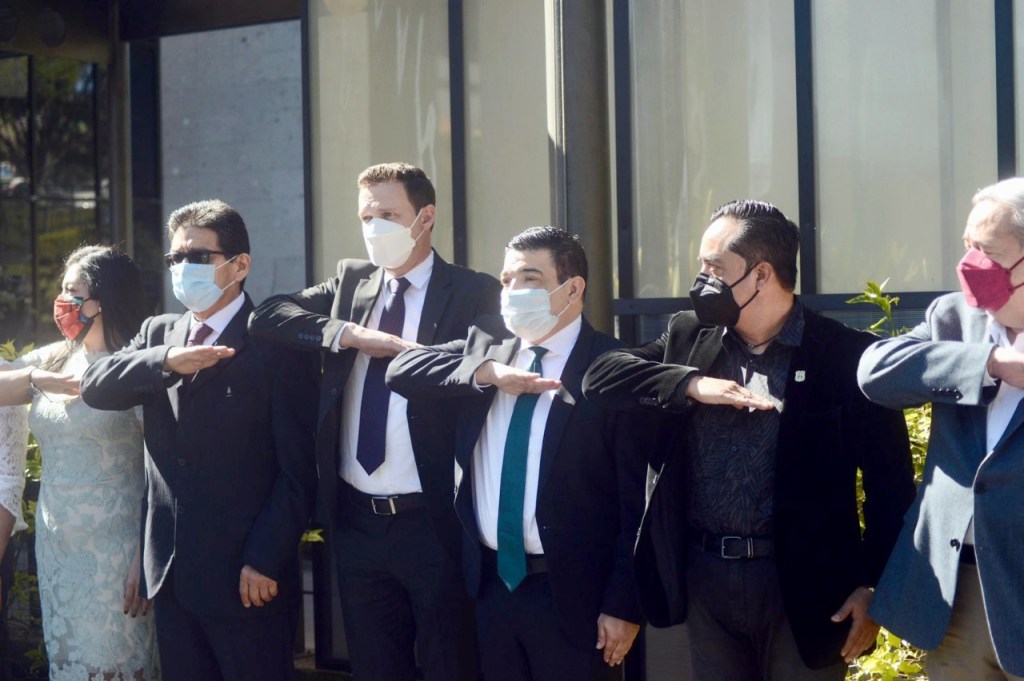 Xalapa, Veracruz, 24 de febrero de 2022.- El presidente de la Junta de Coordinación Política, Juan Javier Gómez Cazarín, encabezó la ceremonia cívica realizada en la explanada del Palacio Legislativo, en el marco del Día de la Bandera.
