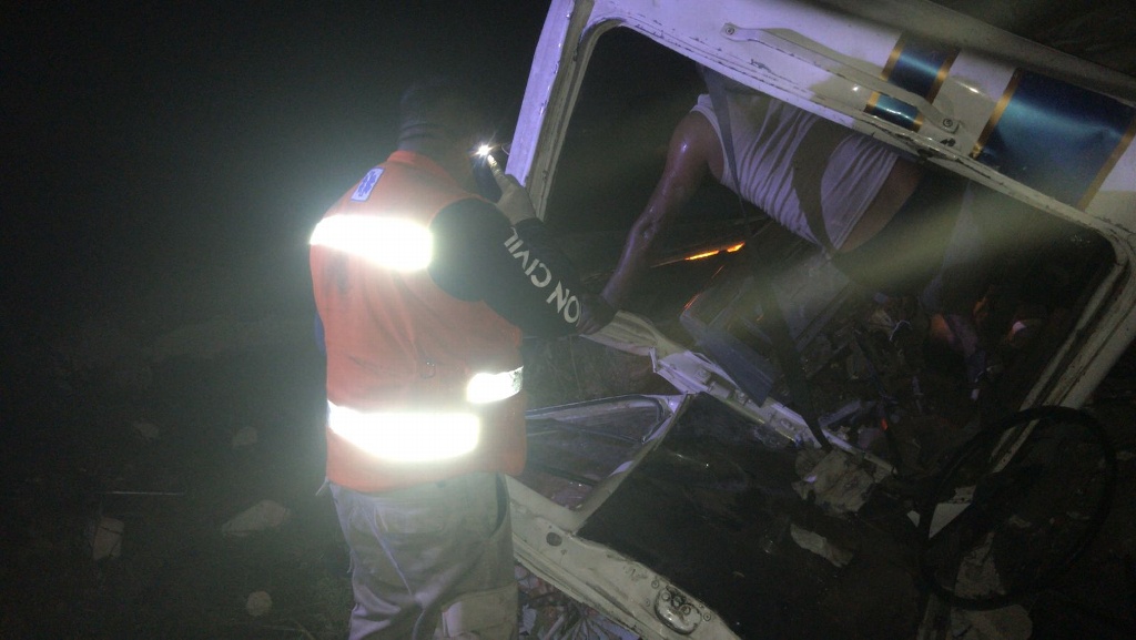 Un tráiler volcó sobre la carretera federal Paso del Toro-La Tinaja, a la altura de Juan de Alfaro, cerca del puente, esta madrugada.