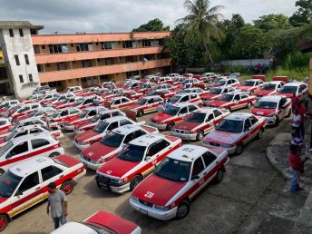 Javier Reyes Ramírez, alcalde de Agua Dulce en coordinación con la Secretaría de Seguridad Pública a través de la Dirección General de Trasporte del Estado, la Delegación de Trasporte Público Región IV y la Secretaría de Salud, llevaron a cabo este sábado la sanitización de cientos de vehículos particulares y públicos.