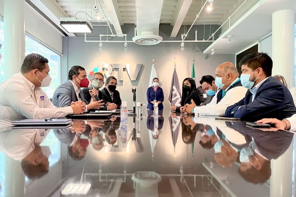 En el evento realizado en la Sala de Juntas de RTV, estuvieron presentes como testigos la secretaria del Trabajo y Previsión Social, Diana Aróstegui Carballo, José Luis Lima Franco, secretario de Finanzas y Planeación, el secretario de Gobierno, Eric Cisneros Burgos, y el coordinador de Comunicación Social, Iván Joseph Luna Landa.