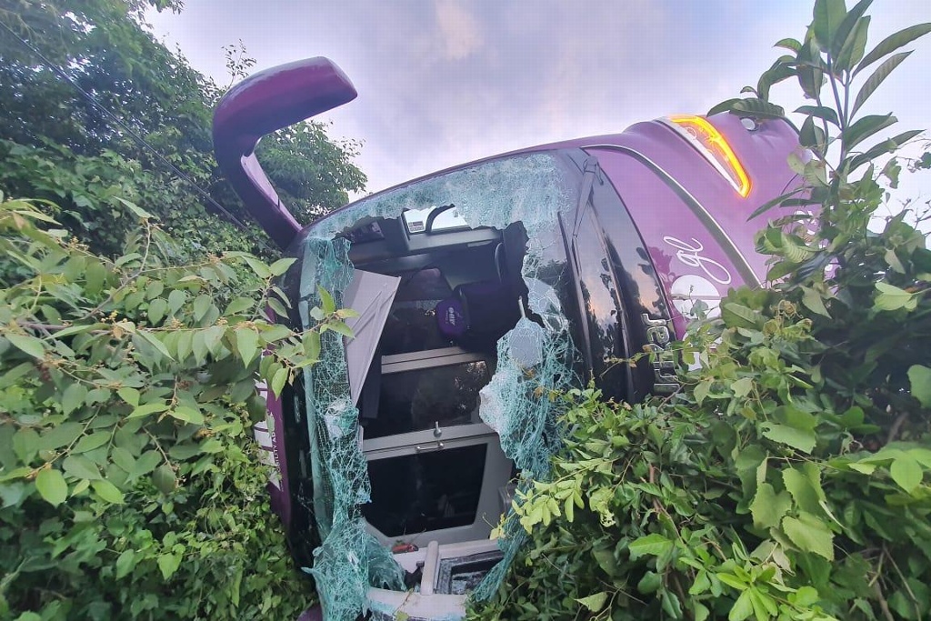 Un autobús de pasajeros color morado se volcó lo que dejó tres personas lesionadas en el municipio de Vega de Alatorre a la altura del Rancho “El Relicario”, según informó en un comunicado la Secretaría de la Defensa Nacional.