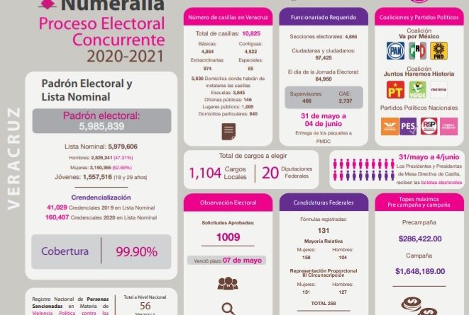 En cuanto a la votación, la coalición “Juntos haremos historia” ha acumulado 452 mil 853 votos, Morena 214 mil 636, PT 112 mil 119, y el PVEM 17 mil 521; la coalición “Veracruz Va” suma hasta ahora 469 mil 207 votos, Movimiento Ciudadano 97 mil 966, Fuerza por México 46 mil 623, Partido Encuentro Solidario (PES) 36 mil 157 y Redes Sociales Progresistas (PES) 32 mil 740.