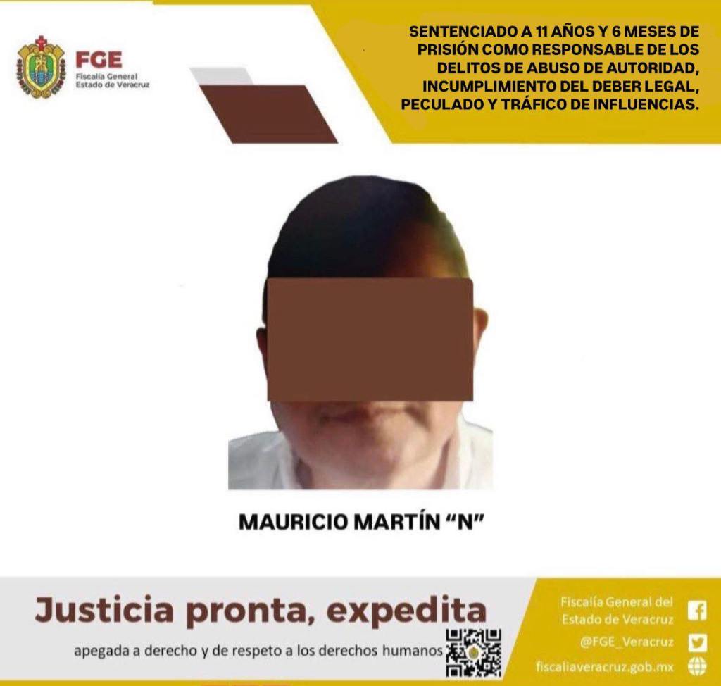 Xalapa, Ver., a 11 de diciembre de 2024.-La Fiscalía General del Estado, a través de la Fiscalía Especializada en Combate a la Corrupción, logró sentencia condenatoria de 11 años y 6 meses de prisión en contra de Mauricio Martín “N”, ex Secretario de Finanzas del Gobierno del Estado, como responsable de los delitos de abuso de autoridad, incumplimiento del deber legal, peculado y tráfico de influencias.