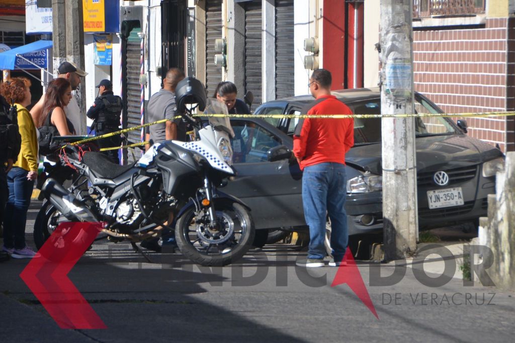 Xalapa, Ver.- La mañana de este miércoles se reportó el deceso de una persona al interior de un vehículo marca Volkswagen Pointer en la calle Arteaga esquina Justo Sierra, al parecer el conductor sufrió un infarto mientras conducía el vehículo chocando contra un poste telefónico y la fachada de una vivienda.