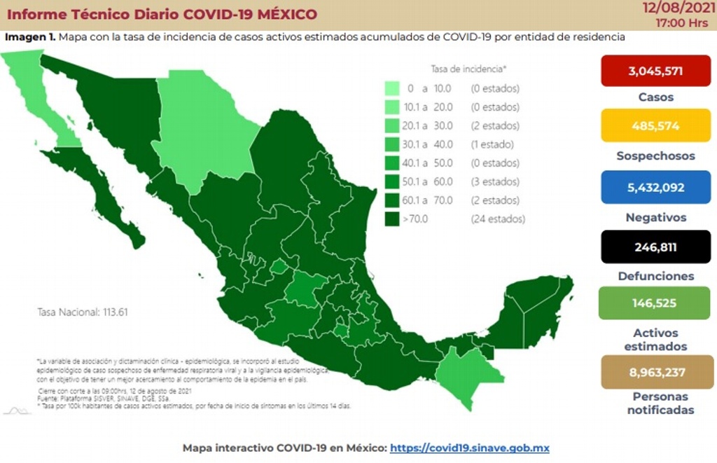 Este domingo 15 de agosto la Secretaría de Salud federal informó que en el país ya suman 248 mil 380 defunciones por COVID-19 desde el inicio de la epidemia en México.