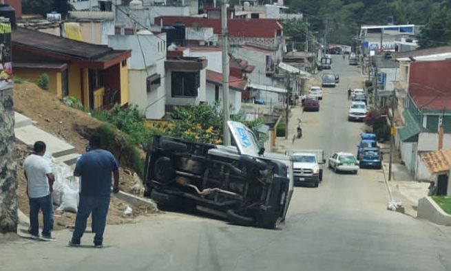 La tarde de este sábado, se registró la volcadura de una camioneta de carga cuando circulaba sobre la calle Armando Ramírez, ubicada en la colonia Francisco Ferrer Guardia en esta ciudad capital.