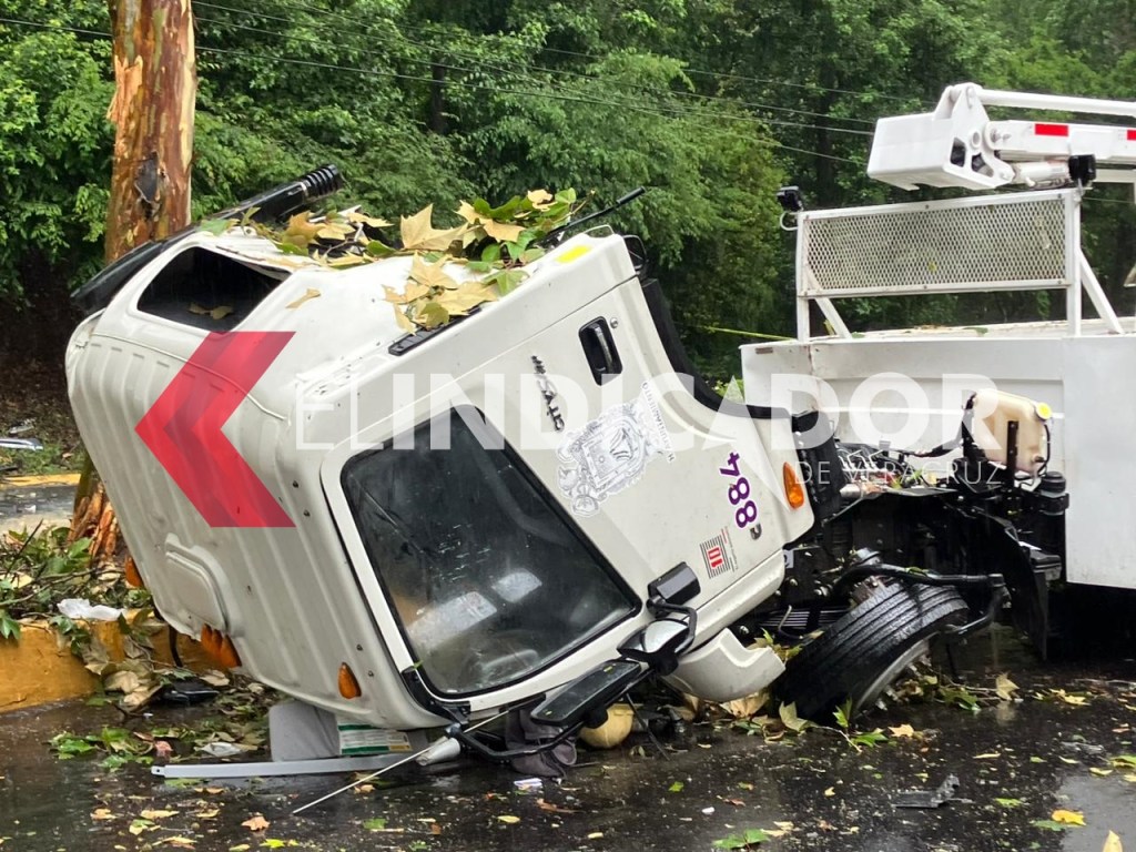 Con un grúa retiraron la unidad que venía de Puebla con destino a Veracruz; la caja iba vacía.