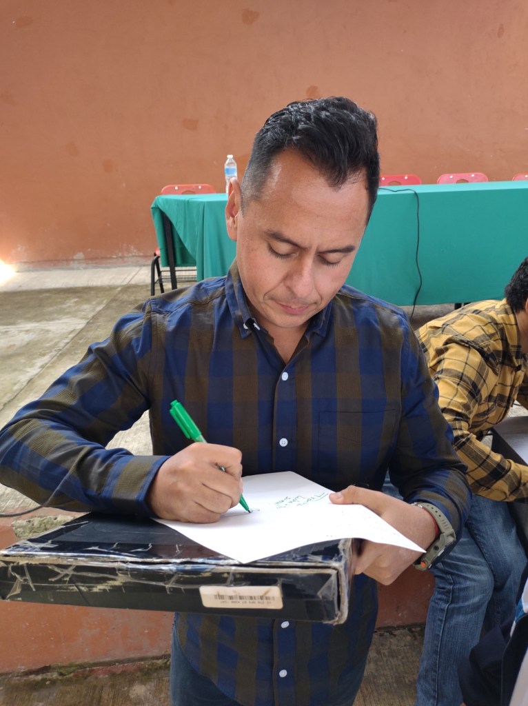 Jilotepec, Veracruz.- Preocupado por el bienestar de las y los jóvenes de su municipio, el periodista, gestor y director de comunicación social de la ONG Pro Libertad y Derechos Humanos Ángel Hernández, visitó la Telesecundaria Salvador Diaz Mirón de la cabecera municipal y compartió con los estudiantes su historia de vida y caso de éxito.