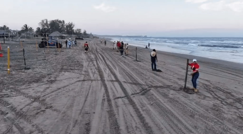 Úrsulo Galván, Ver.- Así avanza la instalación de más de 6 mil carrizos en la Playa de Chachalacas con el cual se delimita un carril por donde circularán Cuatrimoteros, motos y vehículos; esfuerzo realizado por la Asociación de Cuatrimoteros de Playa de Chachalacas, el Agente municipal Freddy Mont y el pueblo de dicha comunidad.