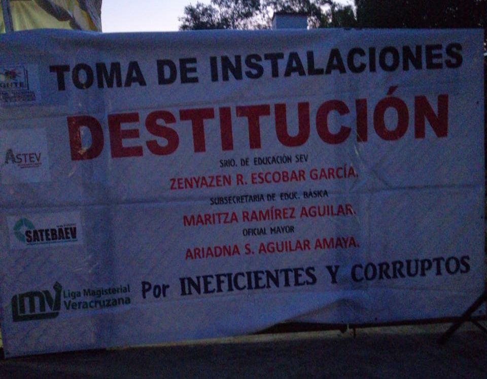XALAPA, VER.- Docentes adheridos a la Unión de Sindicatos Magisteriales del Estado de Veracruz (USMEV) protestó bloqueando el acceso de la Secretaría de Educación de Veracruz para solicitar la destitución de Maritza Ramírez, Subsecretaria de educación básica.