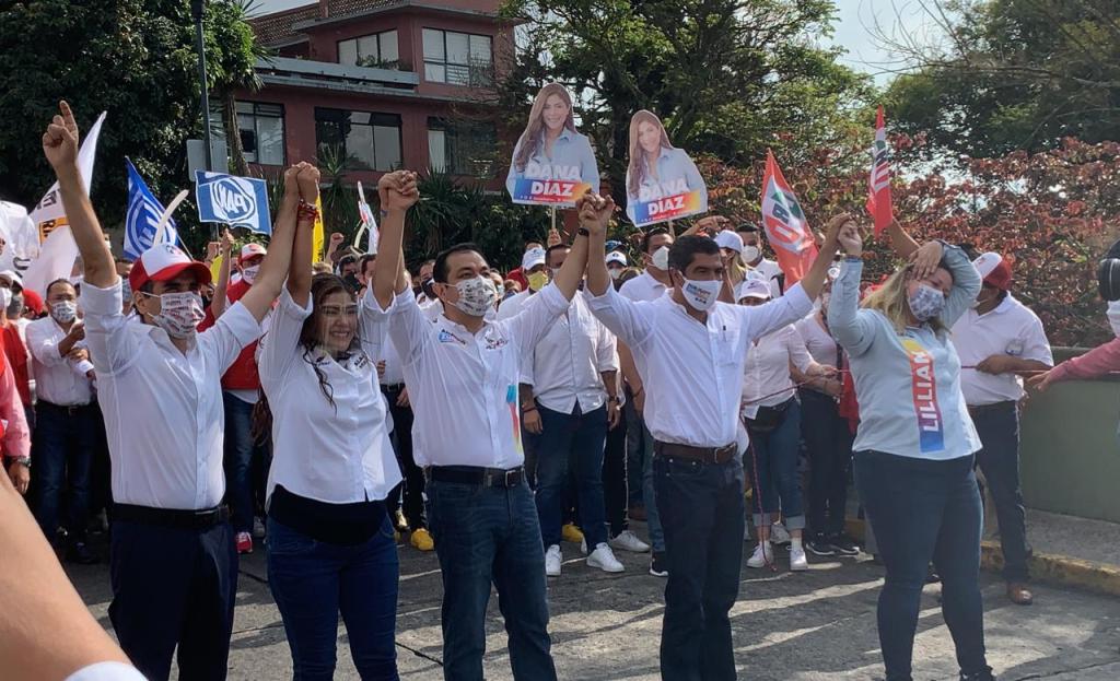 David Velasco Chedraui pidió confianza en la alianza de los partidos PRI-PAN-PRD y pidió el voto para sus compañeros candidatas a diputadas locales, Lillian Cerecedo y Dana Díaz y los candidatos a diputados federales, Américo Zúñiga y Adolfo Mota, “porque lo que está en juego en esta elección es o mantener un régimen autoritario o seguir la ruta de la consolidación democrática”.