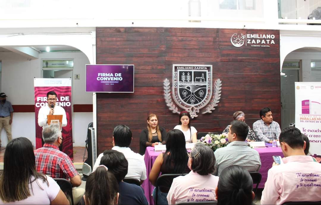 Para ello, el Ayuntamiento de Emiliano Zapata y la STPSP firmaron un convenio de colaboración que, además, permitirá llevar actividades artísticas, académicas y educativas a la población en situación de vulnerabilidad con el fin de concientizar sobre los diversos tipos de violencia contra las mujeres, así como las soluciones que ofrecen las instituciones municipales, estatales y federales.