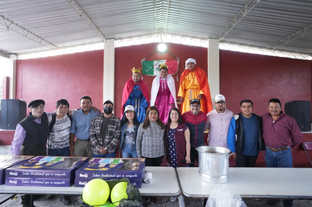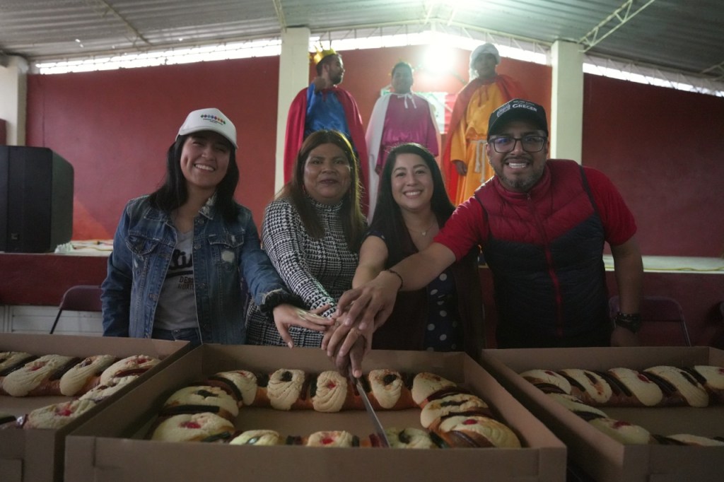 Así, entre juegos y sonrisas, las familias de la comunidad partieron la rosca de reyes y disfrutaron del chocolate caliente, mientras que los más pequeños del hogar también recibieron un juguete.